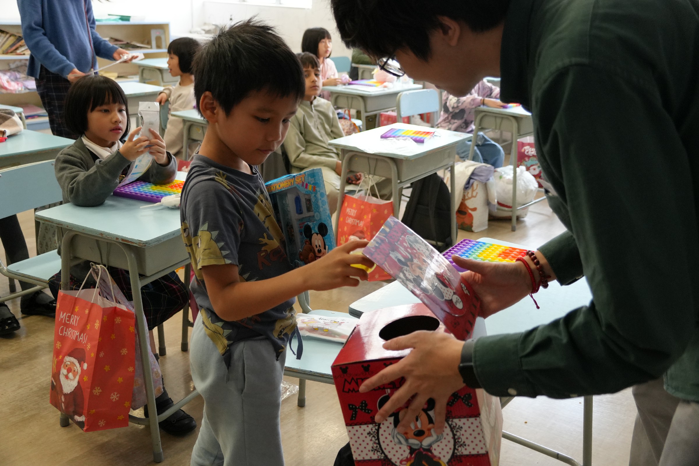 班本聖誕活動由師生共同策劃,安排各種遊戲和美味食物,讓大家在輕鬆愉快的氛圍中共度佳節。此外,學校準備了一些精美的聖誕禮物,班主任與學生們進行抽獎,讓每個人都會獲得驚喜,增強班級凝聚力。