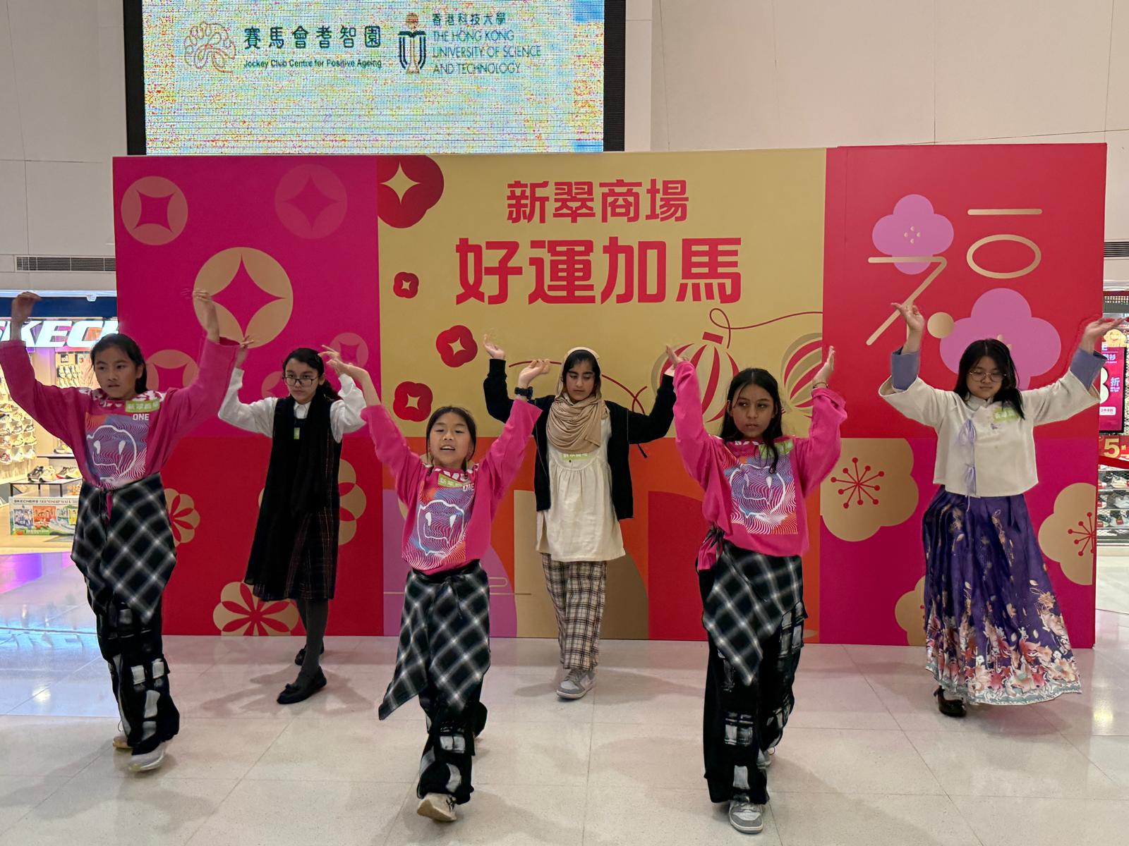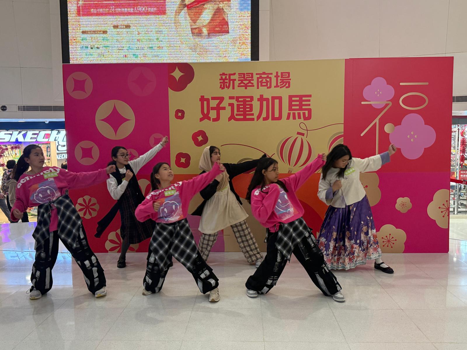 本校學生於柴灣新翠商場進行舞蹈表演(K-Pop、霹靂舞、甲骨文操),把舞蹈帶進社區,於舞台上展現才藝與潛能,並與區內人士分享表演的喜悅,盡展才能。