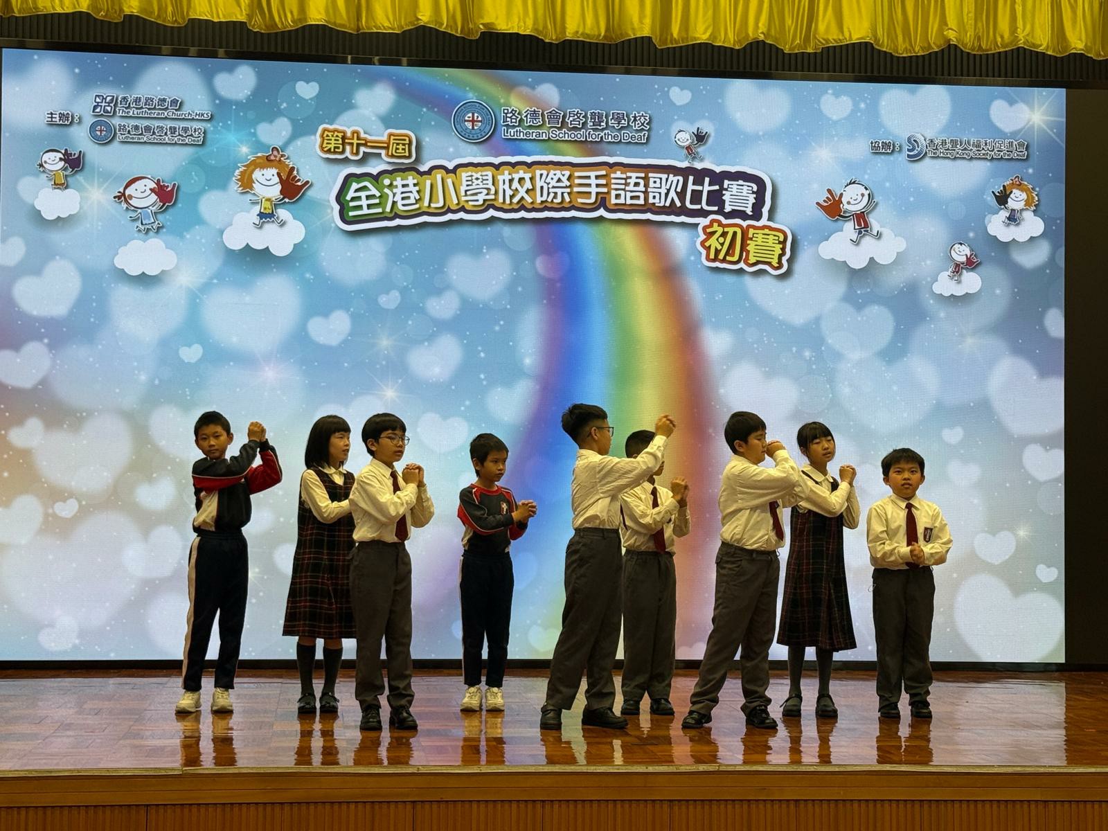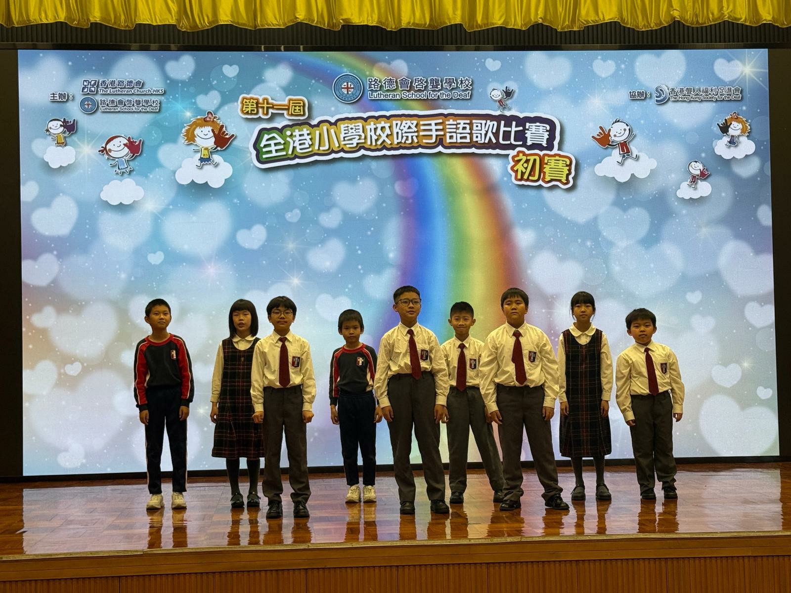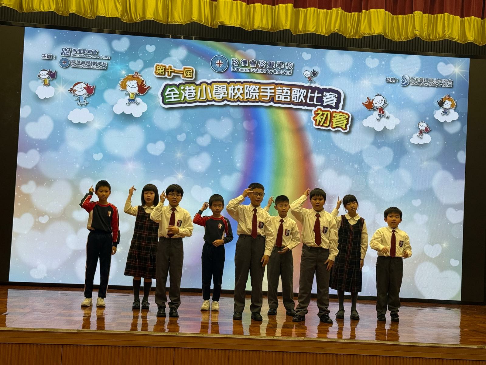 本校早前安排香港聾人福利促進會為學生進行手語共融小組,並指導學生參加第十一屆全港小學校際手語歌比賽。透過學習香港手語及參與演出,學生加深對聾人社群的認識,並培養同理心、合作精神及尊重多元的態度,展現良好的學習表現與共融精神。初賽結果有待大會公布。