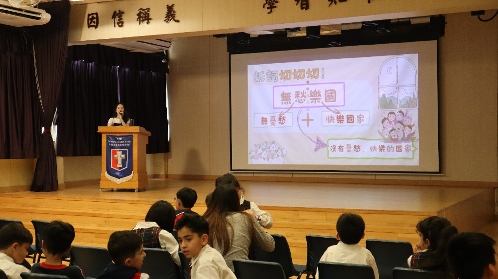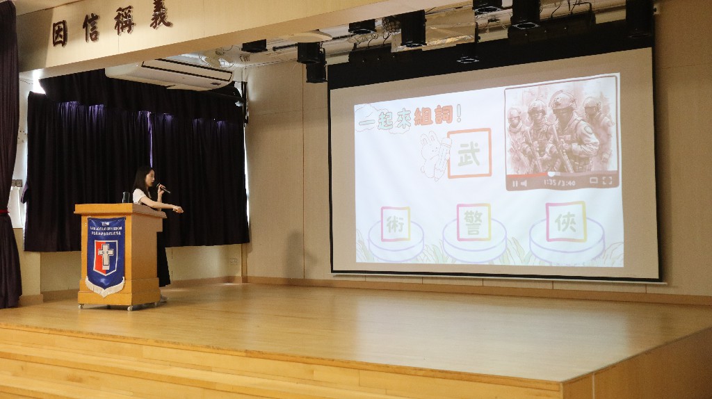校本言語治療師楊姑娘為全校學生舉辦「語素達人」講座。活動以互動遊戲、拆字練習與組詞挑戰為主,讓學生在輕鬆有趣的情境中認識詞根、詞綴與常見語素的意義與用法。學生反應熱烈,積極參與、互相討論,並在遊戲中展示出更靈活的字詞理解力。